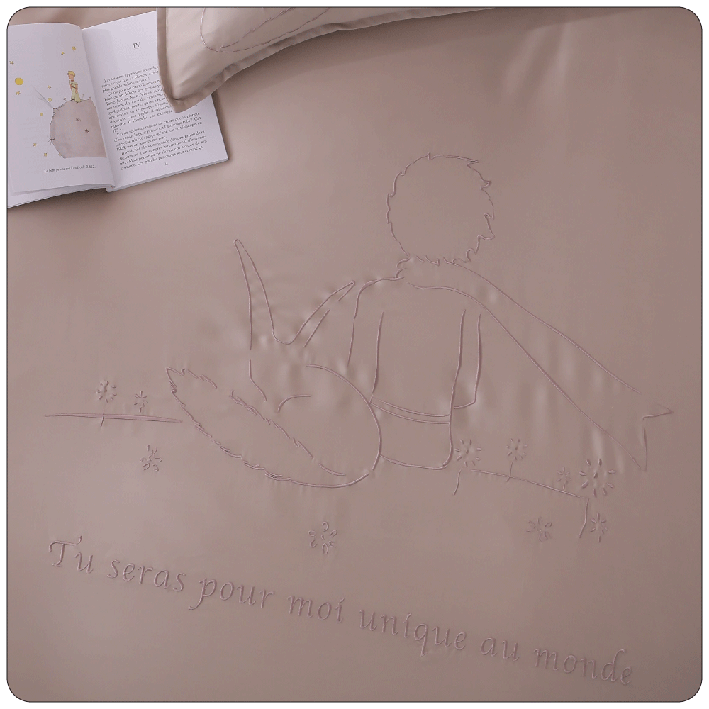 如同小王子聯名的床包組,我們大膽的在被套及枕套上使用大面積且複雜精細的刺繡,多次使用、清洗後仍然能夠保持良好的刺繡品質,正是因為使用相對適合規格面料的原因喔!