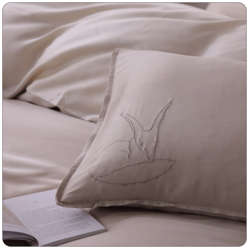 除了床包組之外,我們也使用同樣的100%60支天絲材質的布料做了同系列的抱枕,大面積繡上狐狸背影的圖案,一樣親膚舒適的材質,作為抱枕當靠墊使用時,也會得到相同涼爽的觸感!也是與床包組最好搭配的配飾喔!(購買天絲抱枕有含抱枕芯喔)