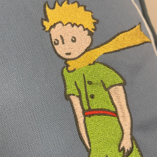 仔細看它的設計,有三種不同的刺繡,小王子和星星是一般常看到的刺繡,近看真的把小王子的人物繡得很精細,直接把小王子本尊神還原了Σ(゚ω゚)