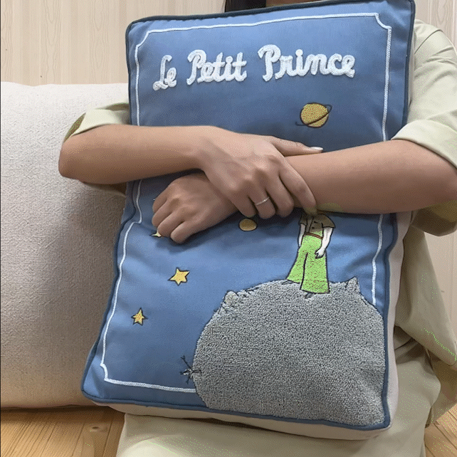 一開始看這個抱枕有種似曾相似的感覺,才讓我想起了小王子的原文書,這款設計概念就是從小王子的原文書來的~側面就是一個書背的概念!