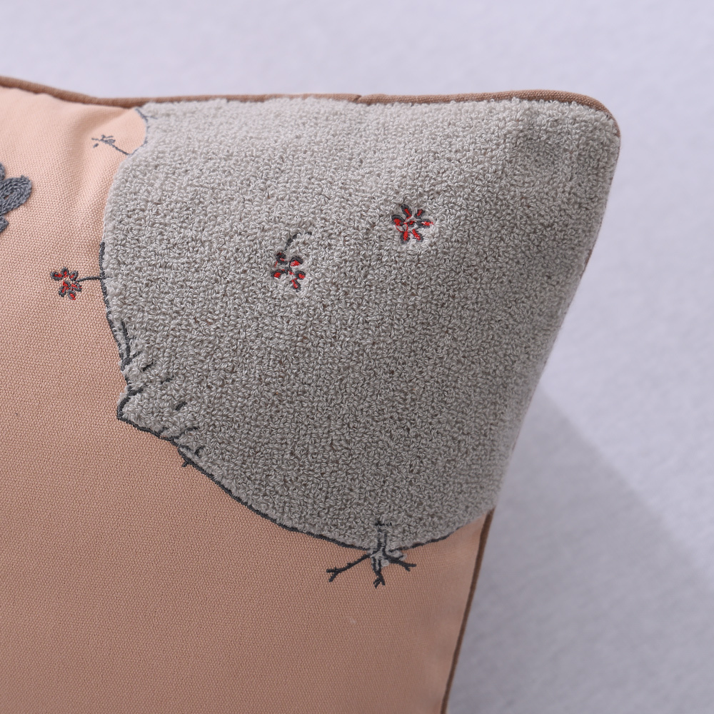 刺繡是飛航模飾最擅長的一種工藝,不僅可以發揮在床包設計上,運用在抱枕上也大大提升精緻程度喔!因為抱枕底部材質為較厚實的布料,在刺繡工藝的運用上就可以做到非常廣泛。