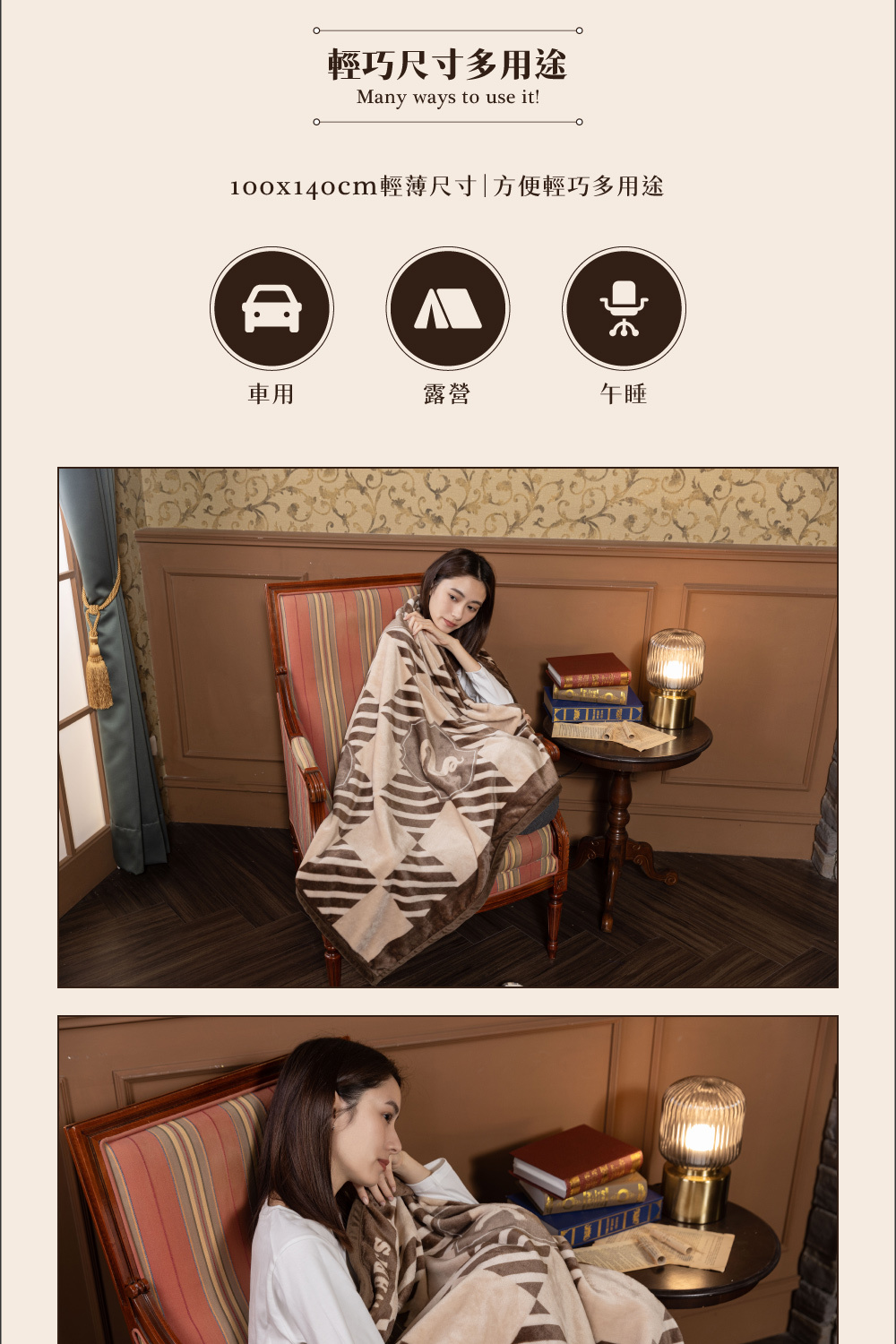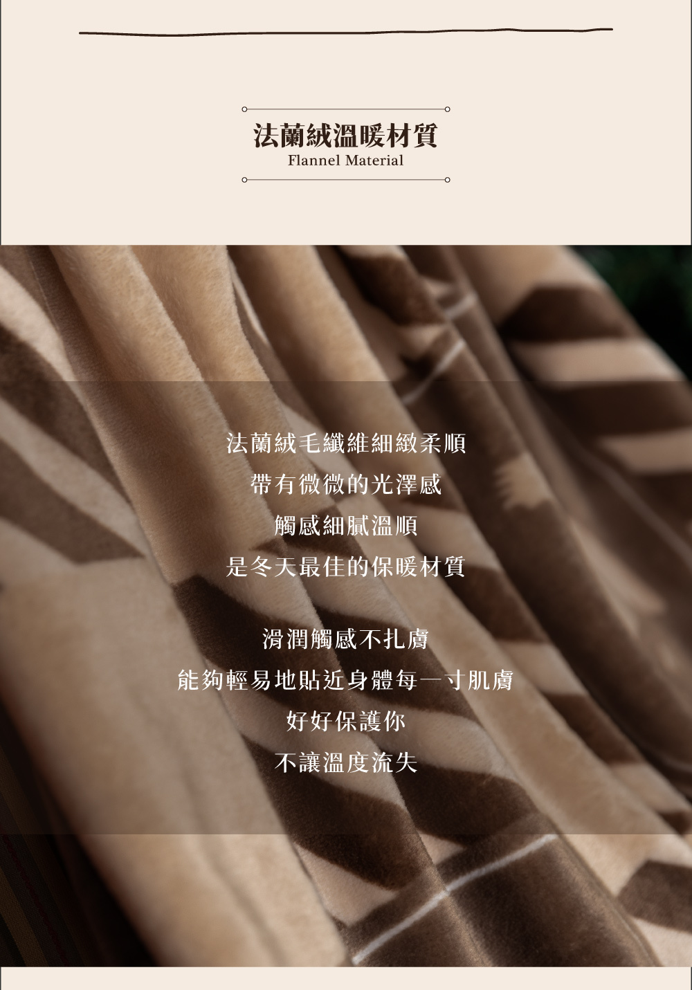 以深米棕色打造的薄毯