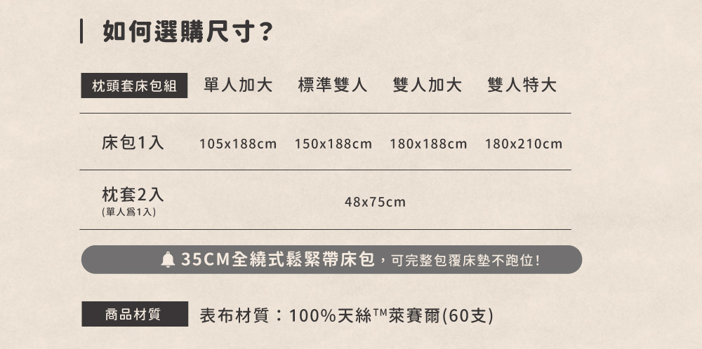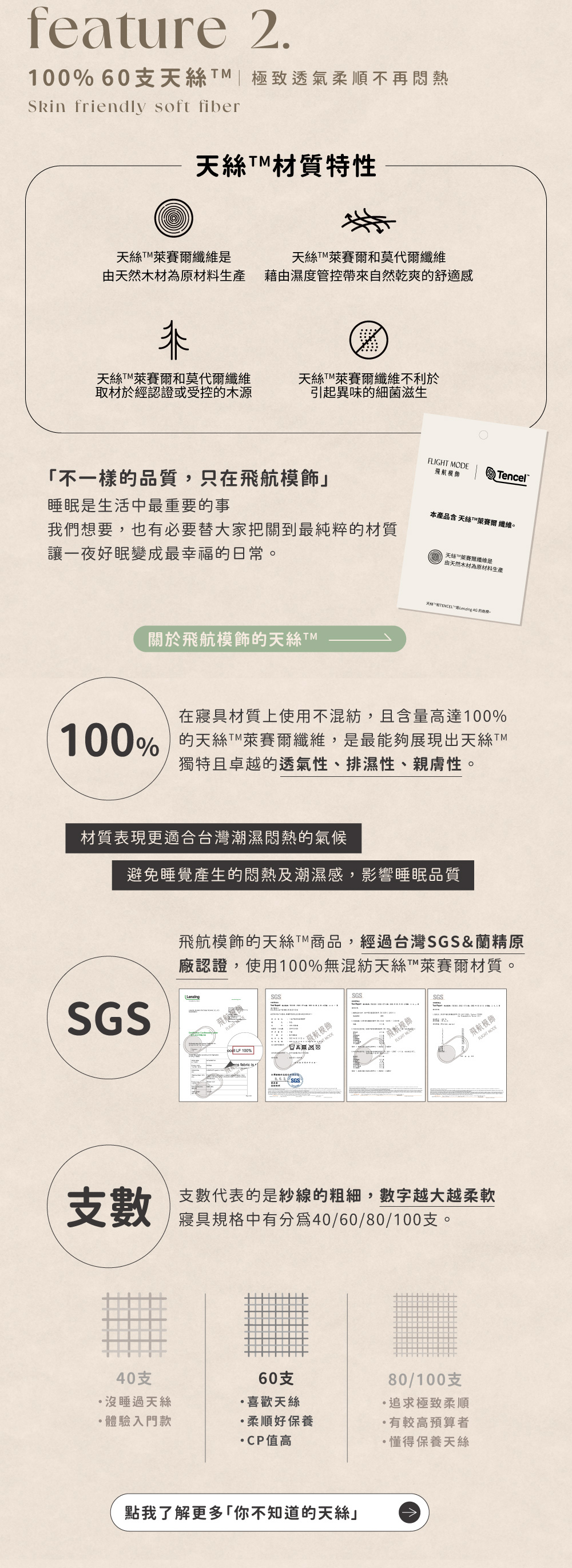 ▸ 100%不混紡的60支天絲™ 萊賽爾