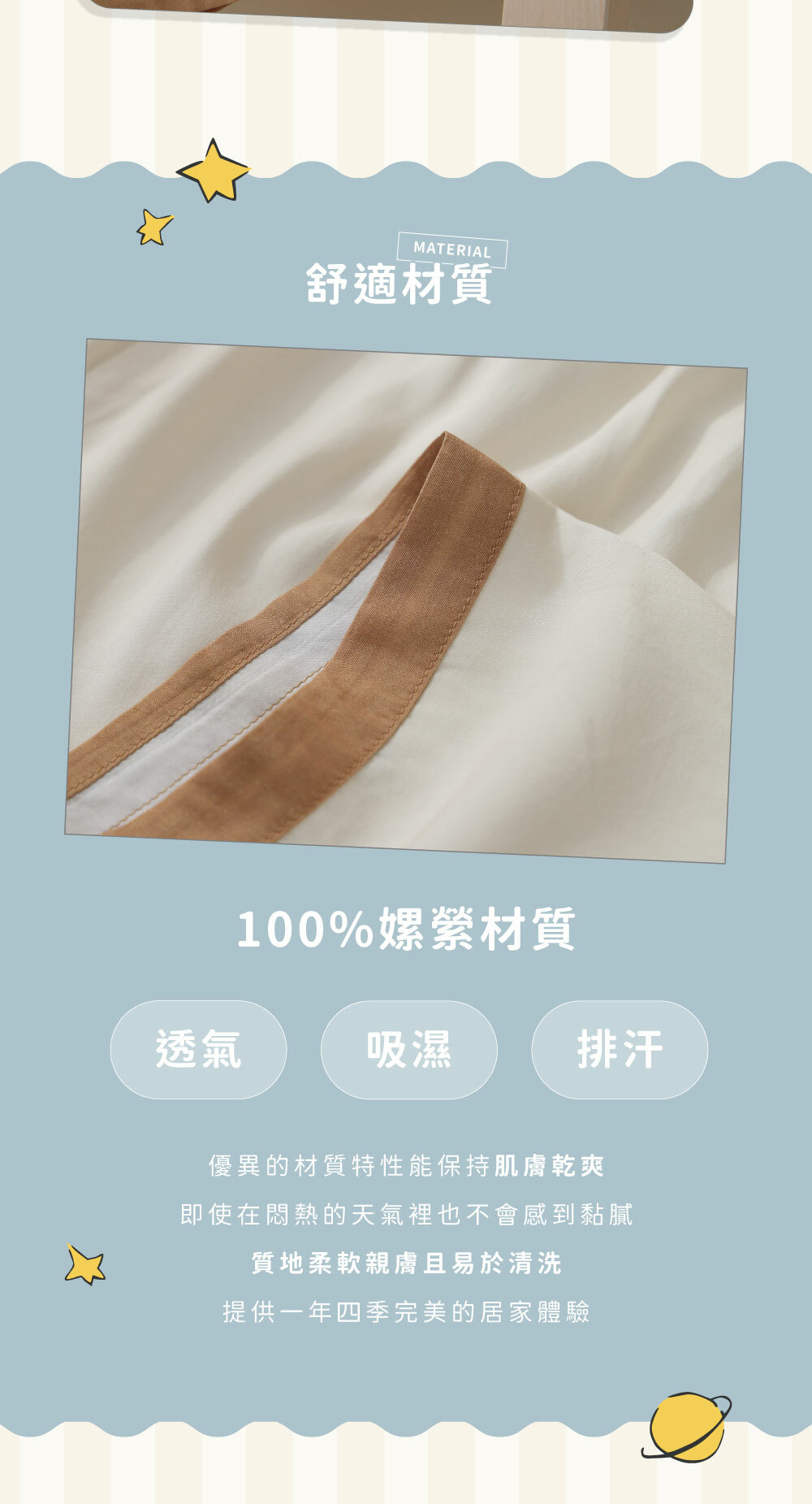 嫘縈是非常適合台灣夏季的溫度及濕度環境,布料輕盈透氣,同時柔軟的觸感,不會造成悶熱感。