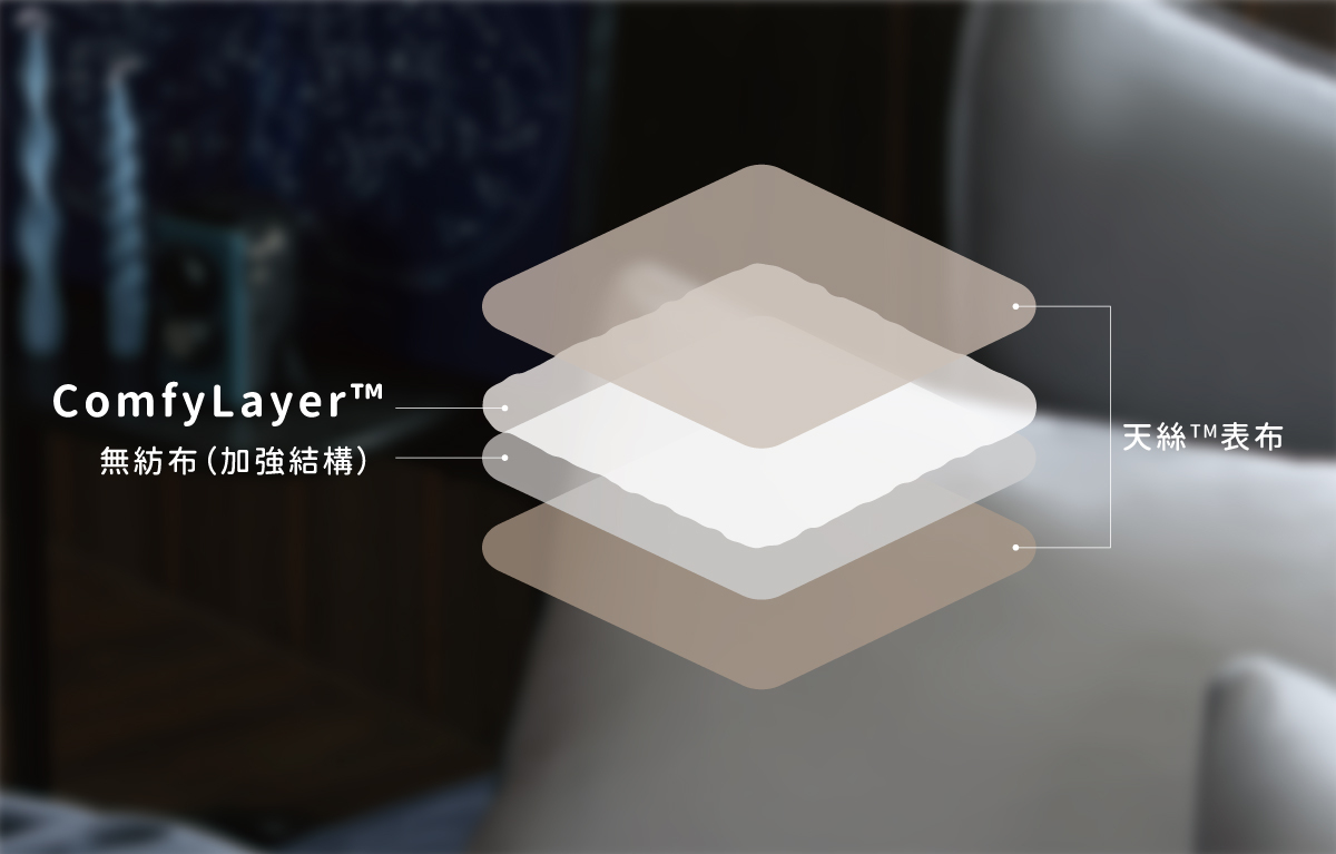 飛航模飾的兩用被套,內裡鋪棉使用ComfyLayer™,與天絲布的貼合程度高,蓋感既貼身又透氣,幫你打造最佳的睡眠黃金組合。