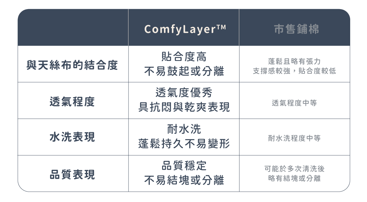 「 材質表現更適合台灣潮濕悶熱的氣候,避免睡覺產生的悶熱及潮濕感,影響睡眠品質。」