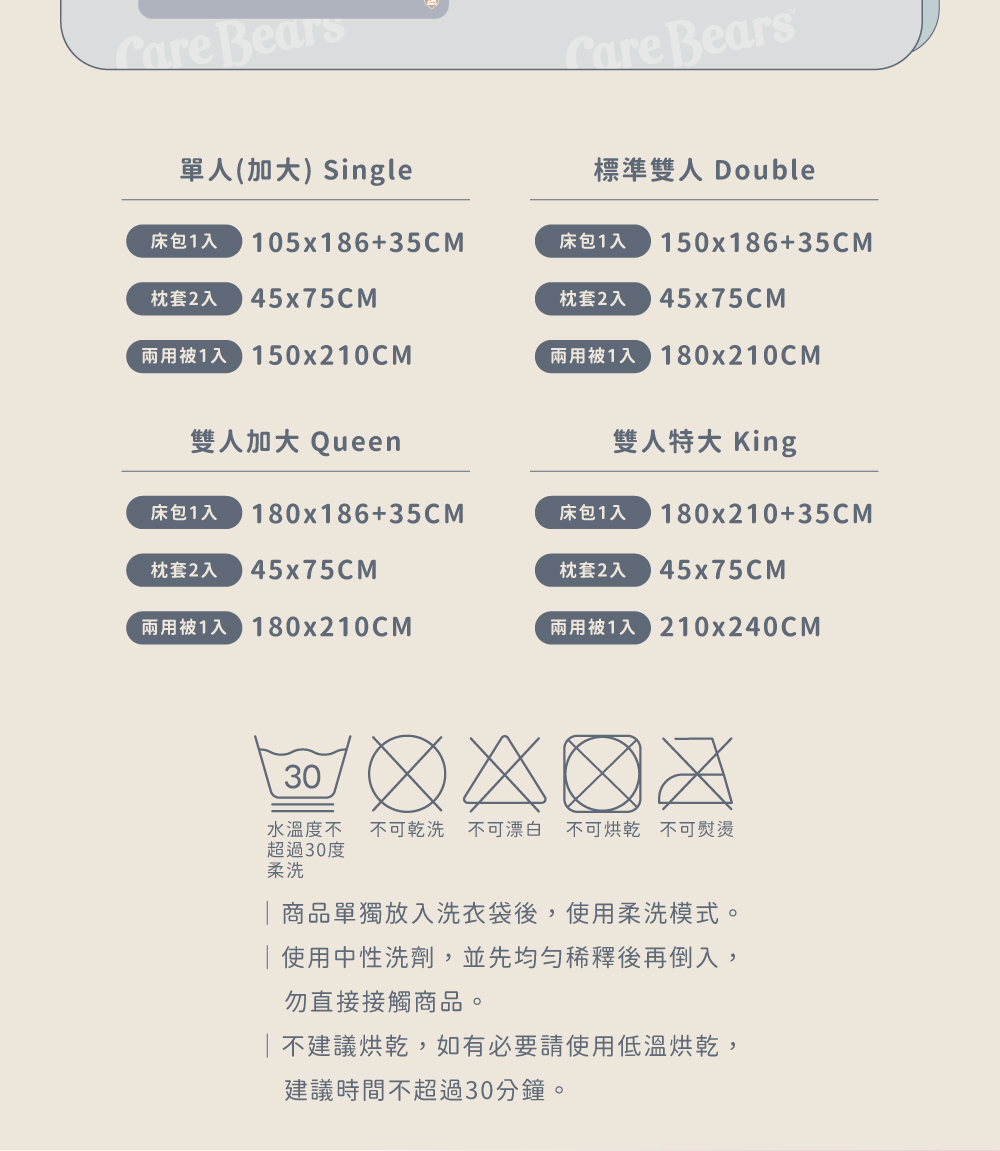 晚安熊兩用被床包組 / 頂級100%60支天絲™【Care Bears™】