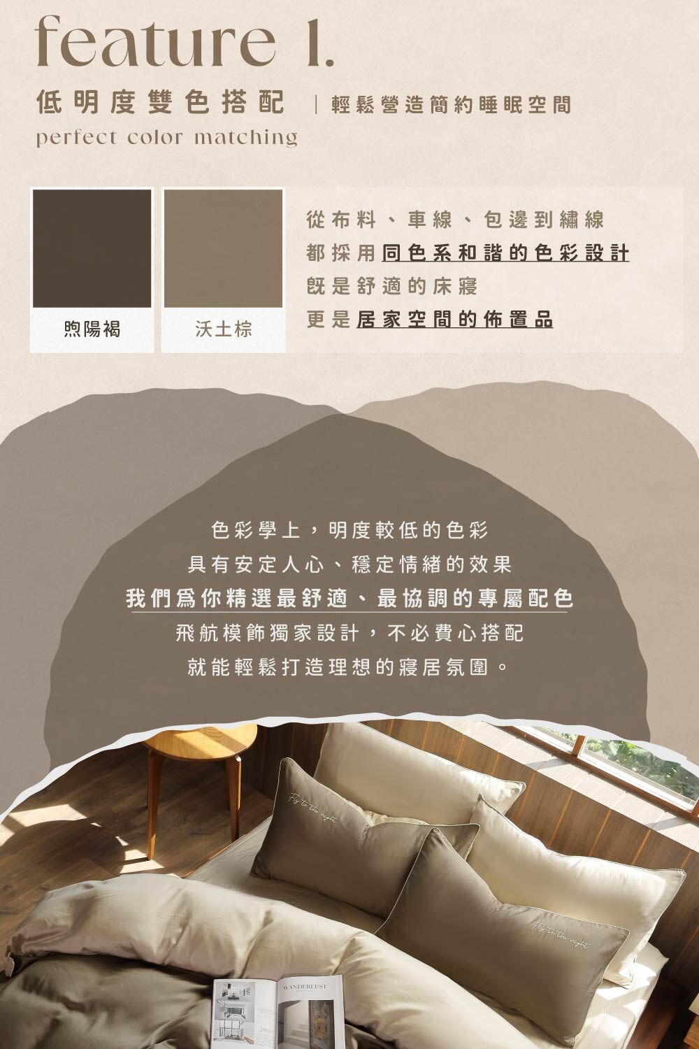 ▸ 低明度雙色搭配打造質感臥室