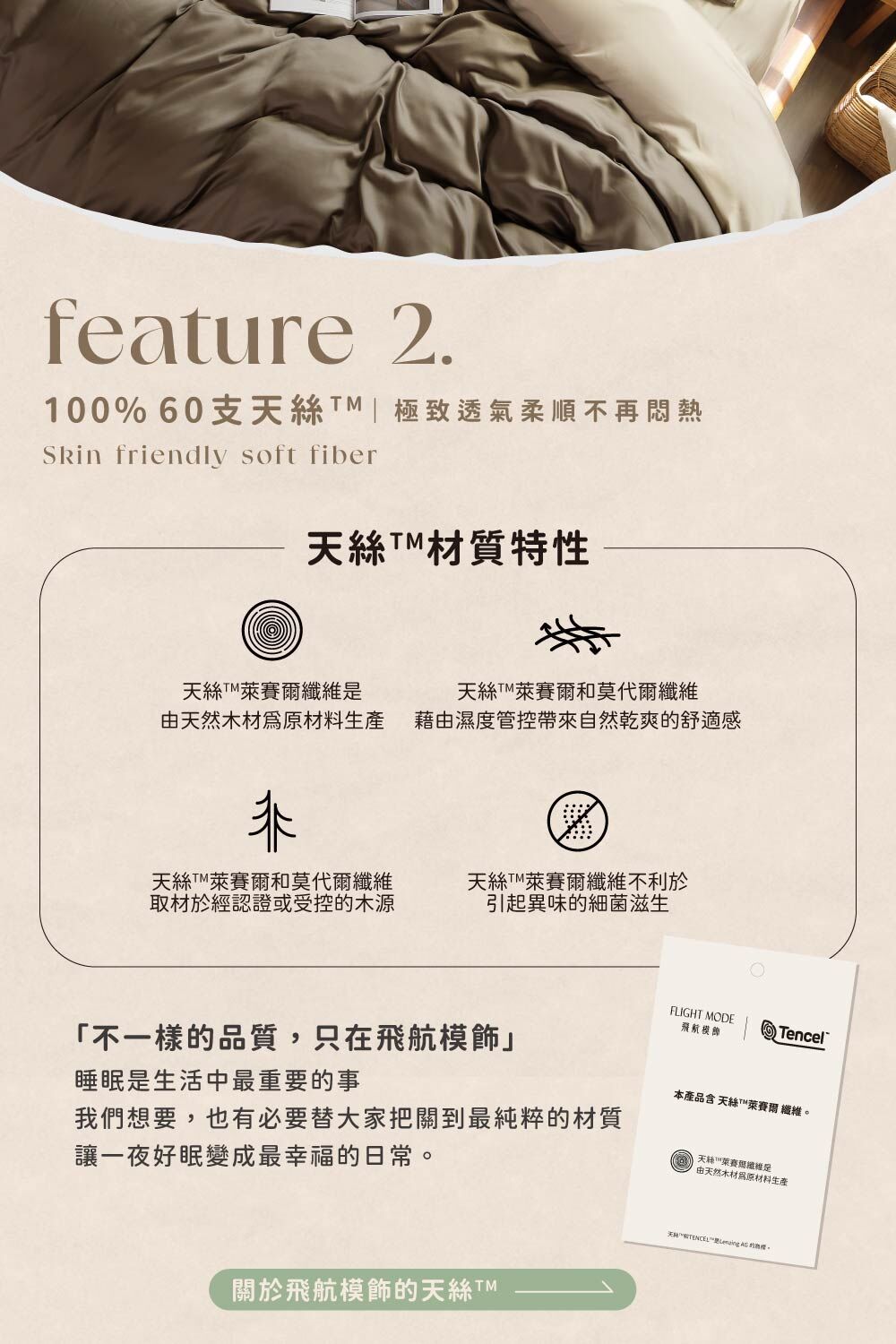 ▸ 100%不混紡的60支天絲™ 萊賽爾
