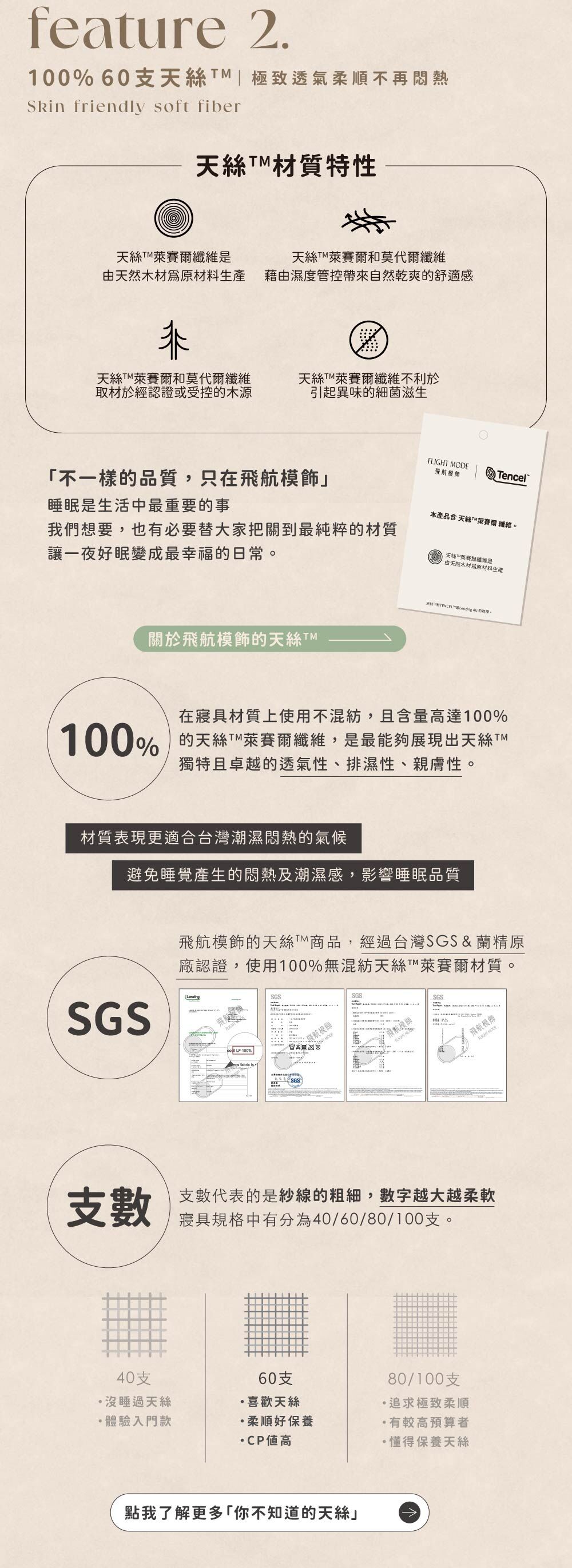 ▸ 100%不混紡的60支天絲™ 萊賽爾