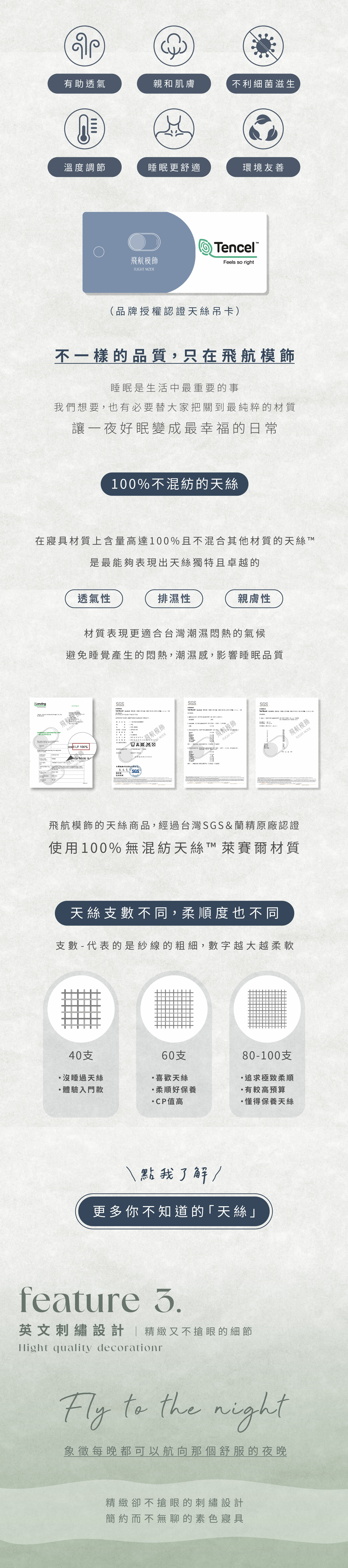 ▸ 100%不混紡的60支天絲™ 萊賽爾