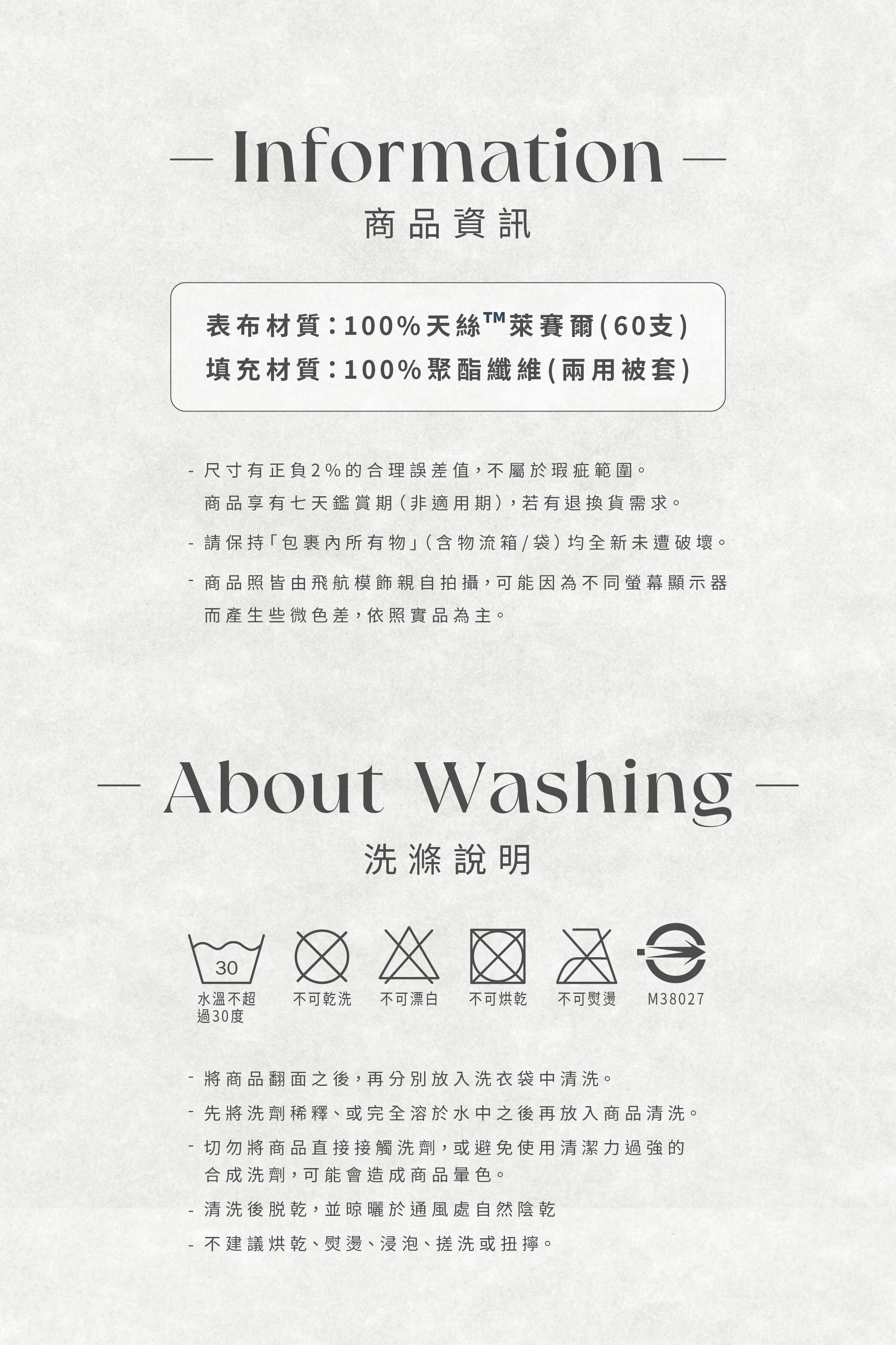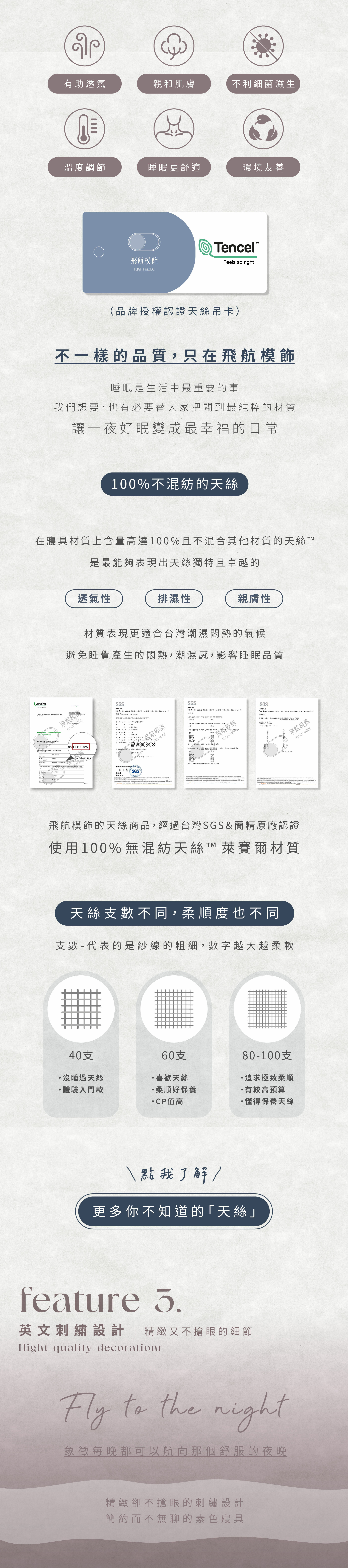 ・萊賽爾天絲「純纖維舒適加分」