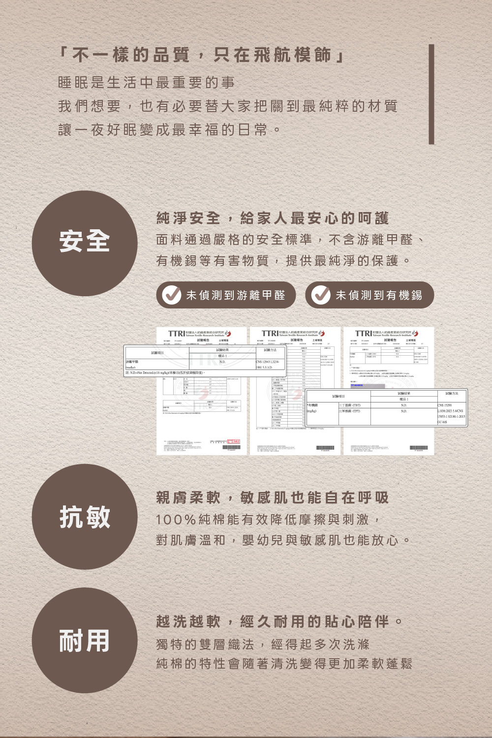 ▸ 安全認證:不含游離甲醛、有機錫等有害物質
