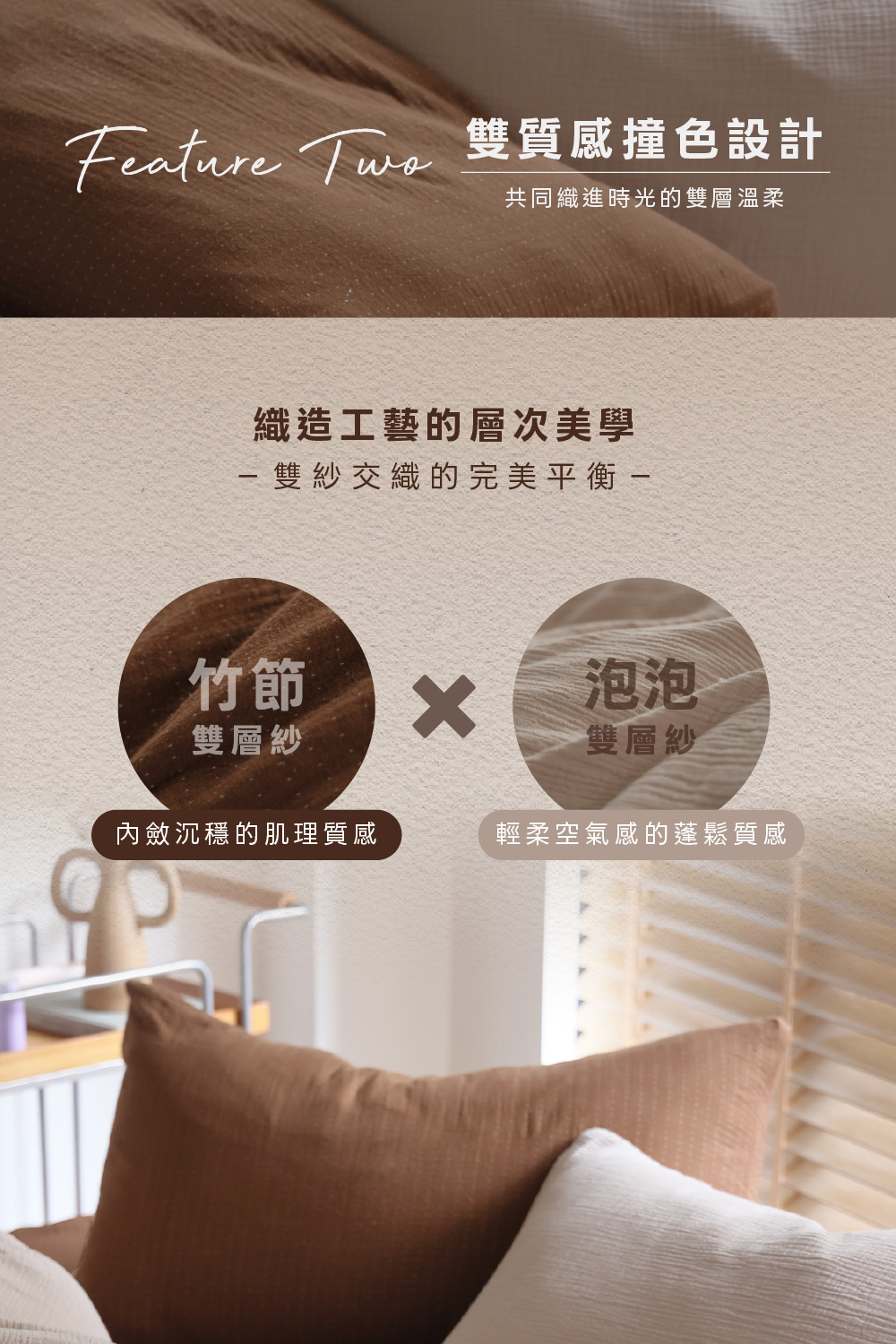 ▸ 100%純棉雙拼材質:竹節雙層紗X泡泡雙層紗