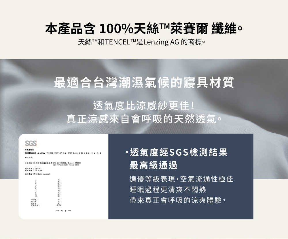 ▸ 100%不混紡的60支天絲™ 萊賽爾